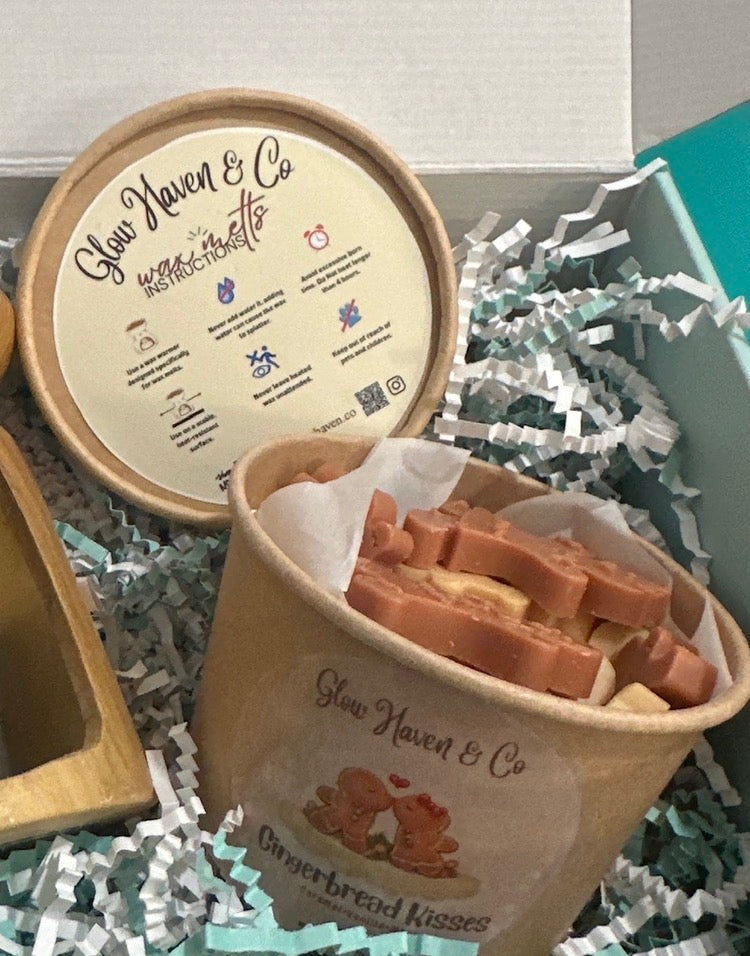 Each wax melt is hand-poured using 100% soy wax and phthalate-free fragrance oils.